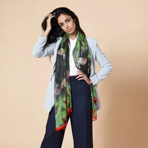 Their natural vibrant feathers became the base for a lively scarf design. This was an especially important feature to reflect the zoo, home to animals of various species and a popular destination for all local and international visitors.